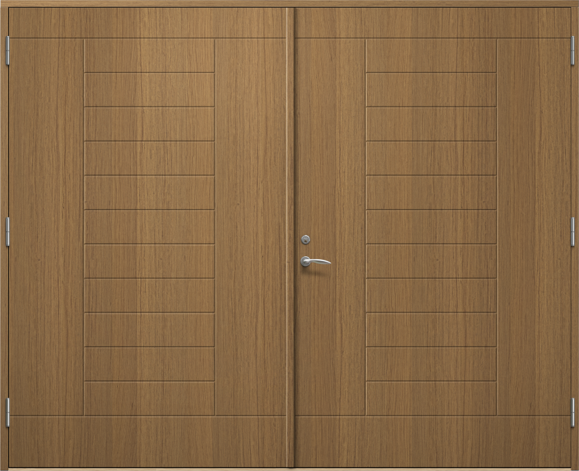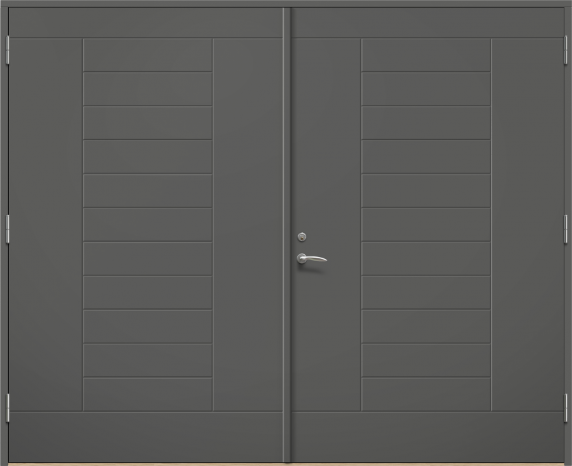 Lund P1700 är en garageport med spårad fin yta. Den finns både som vipp- och slagport. Ytterdörr finns i samma design och material.